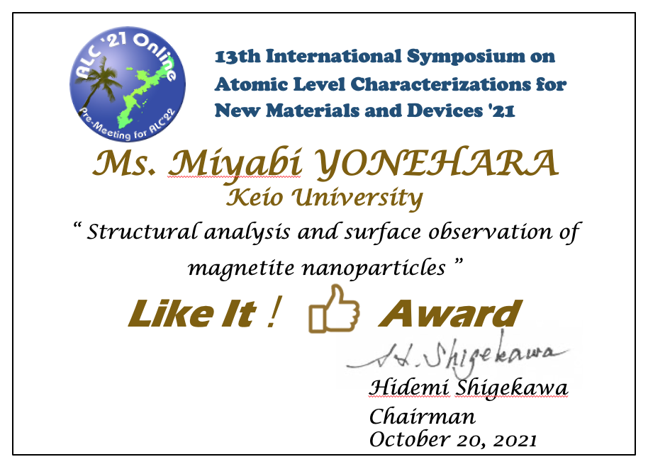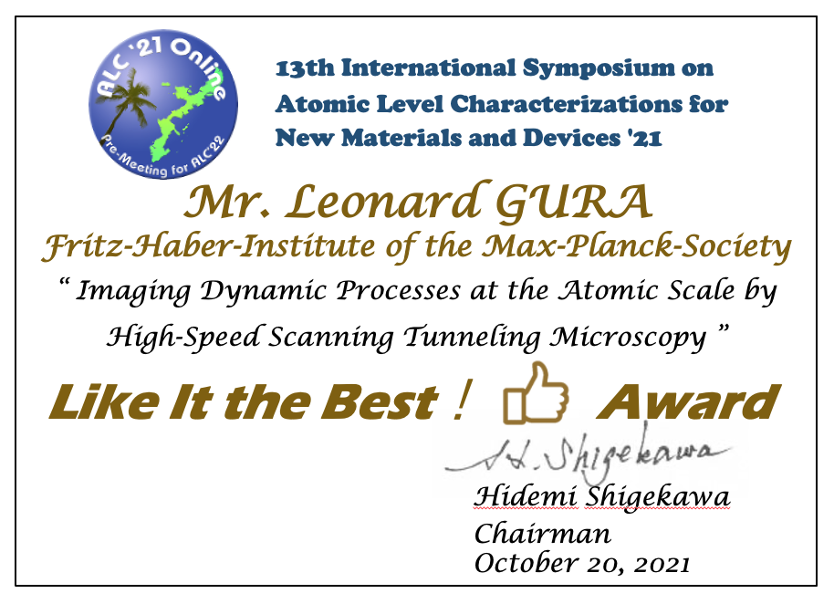 Congratulations! The following 3 talks won the Like It! Award of ALC'21 Online. We will be sending certificates of commendation to all winners by mail, so please wait for a while until you receive them.